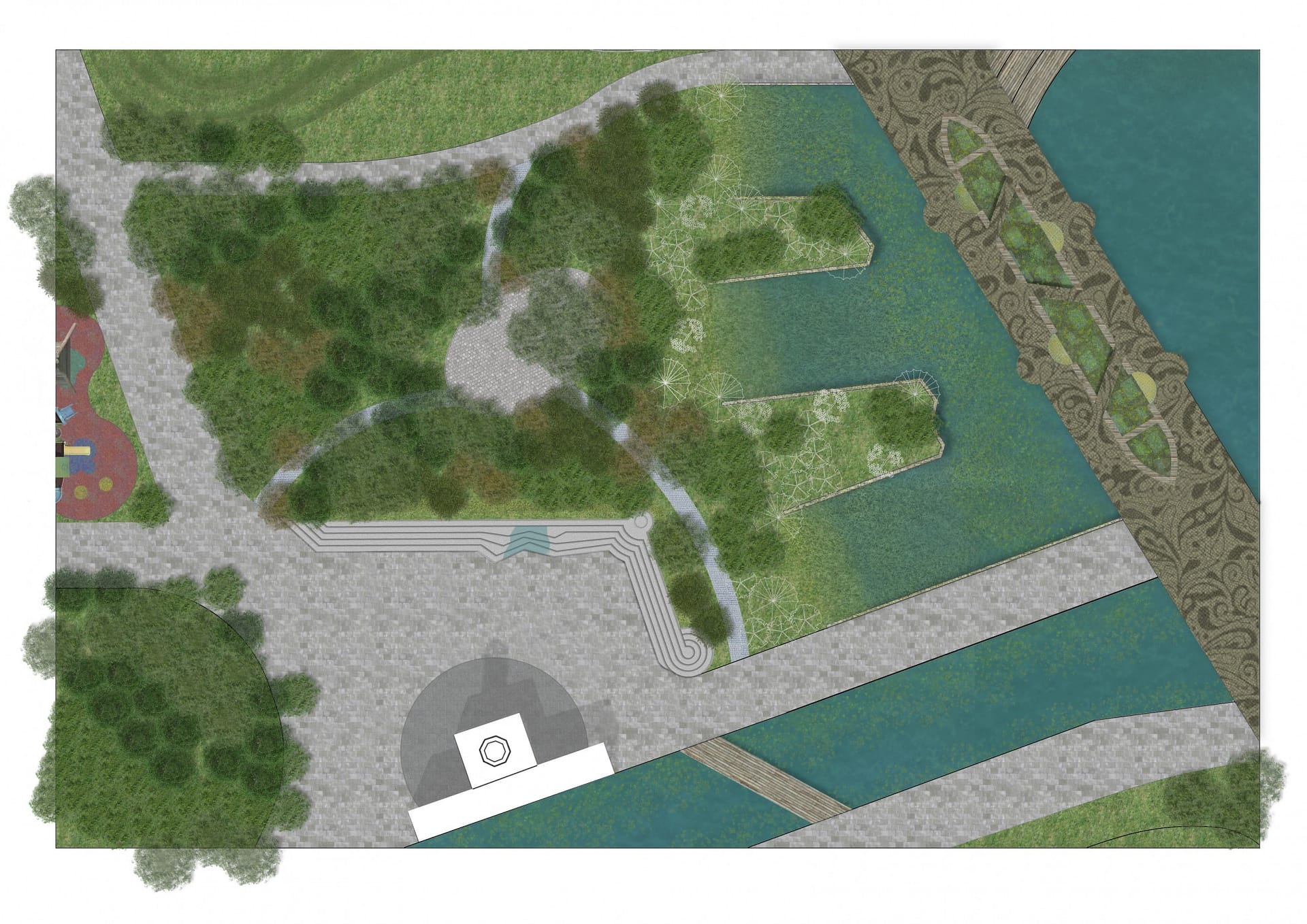 The design concept for the site is based on social and environmental connectivity through a green infrastructure of urban forest networks.